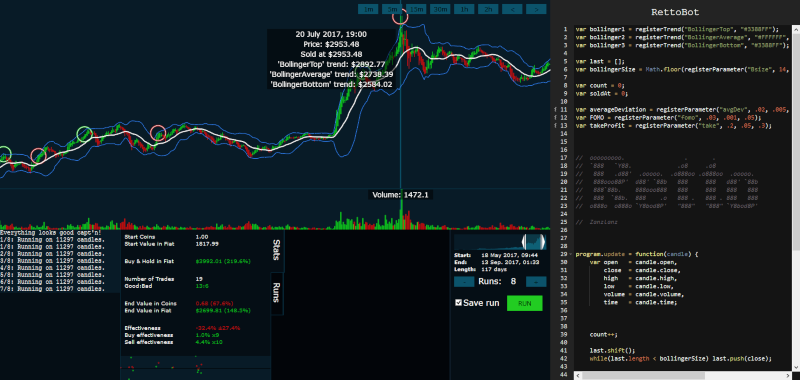 RettoBot is a free online backtester that helps you easily run your trading bot algorithms on historical market data.